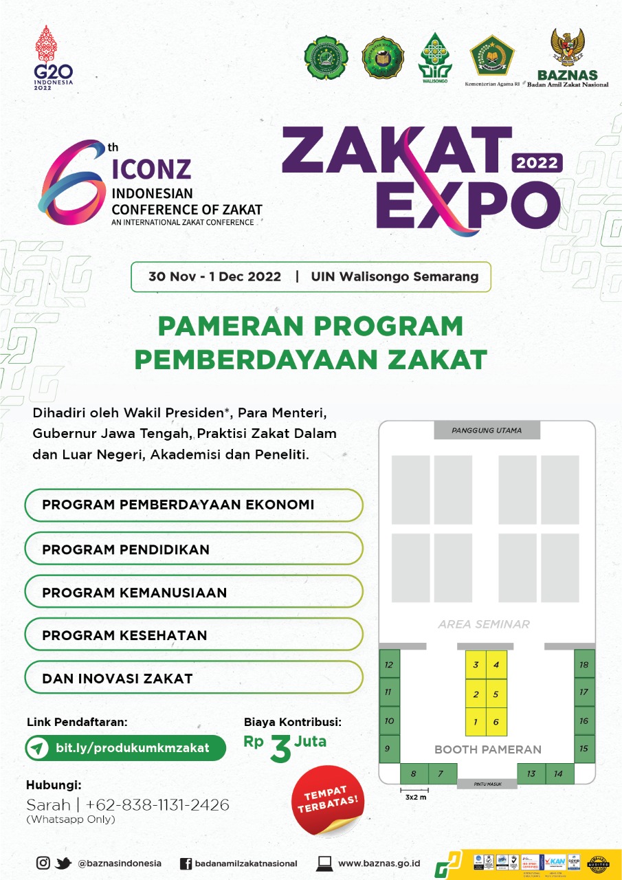 Zakat Expo is an innovative activity in a series of Indonesian Zakat Conferences (ICONZ) initiated by the Republic of Indonesia's National Zakat Agency (BAZNAS RI). In this activity, an exhibition of the Zakat Empowerment Program will be held along with mustahik products assisted by the zakat program.