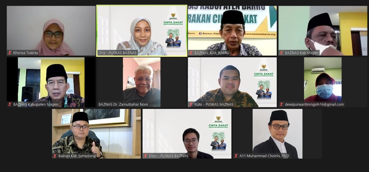 On Thursday (02/24/2022), Puskas BAZNAS successfully carried out an Online Focus Group Discussion (FGD) with the theme "The Implementation Guideline of Zakat City". This discussion aims to obtain feedback and suggestions from practitioners from Regional BAZNAS to improve the feasibility of the Zakat City study to be implemented in the district or city region.