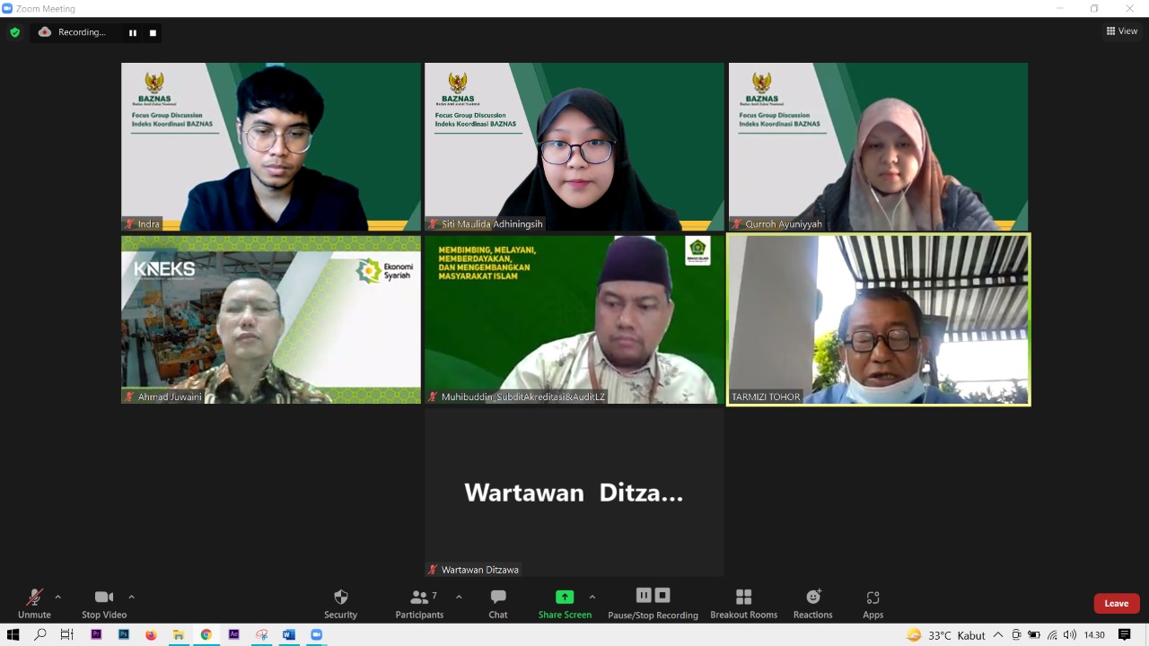 On Friday (10/09/2021), the BAZNAS Centre of Strategic (Puskas BAZNAS) held a discussion on designing a national zakat coordination index online together with the National Committee for Sharia Economics and Finance (KNEKS) and the Ministry of Religious Affairs the Republic of Indonesia (KEMENAG)