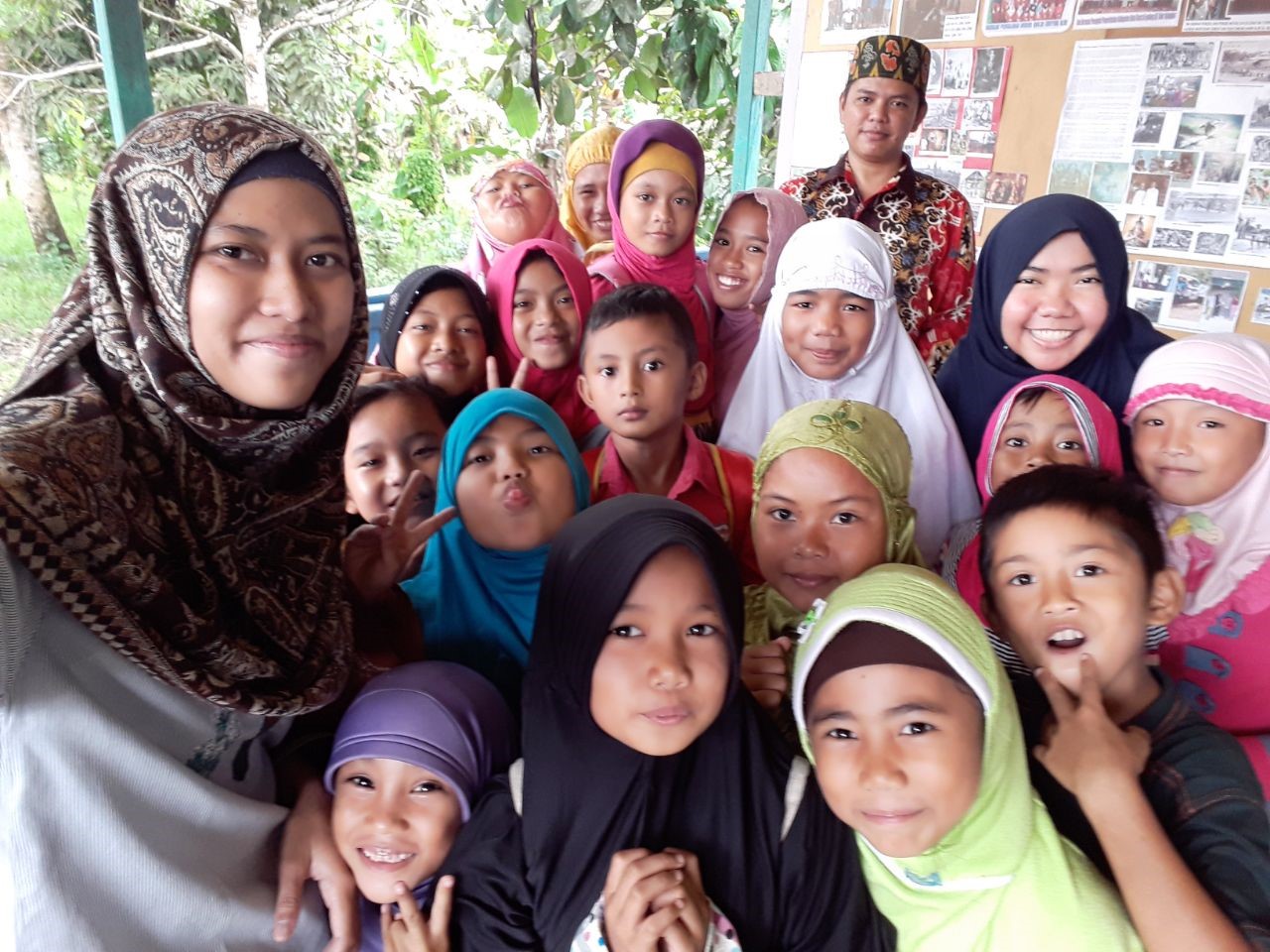 The researchers of Puskas BAZNAS with children and Islamic preacher of Muyub Ilir Village