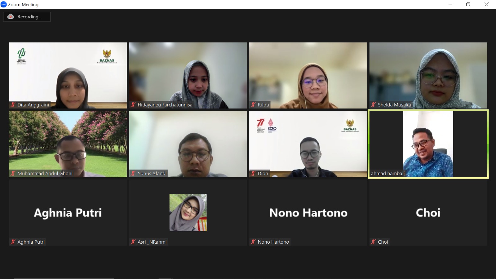 On June 20, 2023, a meeting agenda was held between the Directorate of National Zakat Research and Development (DKPN), the Directorate of National Planning, and Al-Azhar University Indonesia. This meeting was conducted online through Zoom Cloud Meeting to follow up on the initial discussion of research on the Planning Quality Index (IKP) of BAZNAS. Mr. Muhammad Abdul Ghoni and Mrs. Asri Nur Rahmi, representatives from Al-Azhar University Indonesia, were also present at the meeting.