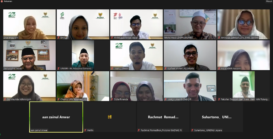 On Monday, February 19, 2024, a meeting and socialization of the Zakat and Poverty Newspaper/Bulletin Development Program was held which was opened directly by the Head of BAZNAS for Planning, Study and Development, Prof. (HC) Dr. H Zainulbahar Noor, SE, M.Ec. held online via zoom meeting and inviting all partners of the Zakat Management Laboratory. This socialization was attended by 10 academics from 7 campuses including Universitas Muhammadiyah Jakarta, UIN Sayyid Ali Rahmatullah Tulungagung, Institut Ilmu Al-Qur’an Jakarta, UIN Walisongo Semarang, Universitas Islam Nahdlatul Ulama Jepara, UIN Kiai Haji Achmad Jember, Universitas Wiralodra Indramayu.
